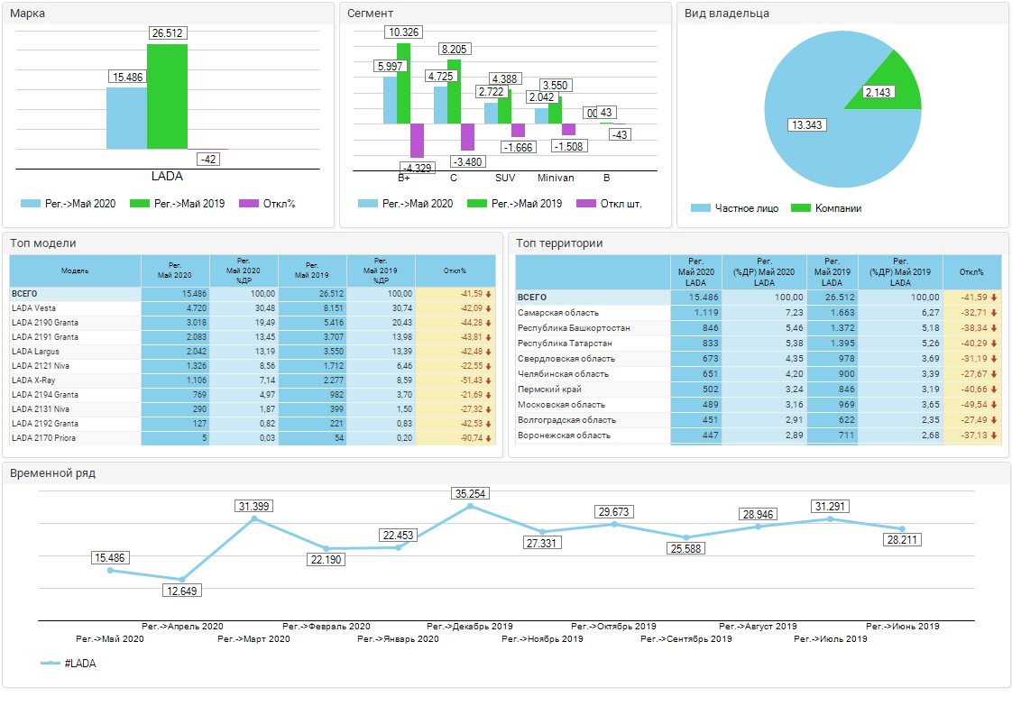 Обзор бренда Lada / РС / Регистрации новых / Май 2020 г. / Россия