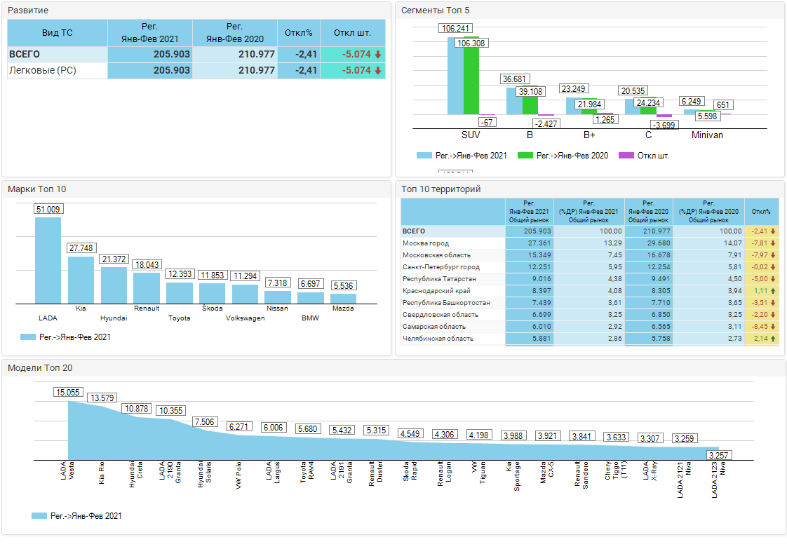 Добавим, что на российской авторынке продажи легковых автомобилей составили 205 903 ед. за январь-февраль 2021 года, согласно данным «Автостат Инфо». Это на 2,4% меньше количества, проданного годом ранее — 210 977 ед.